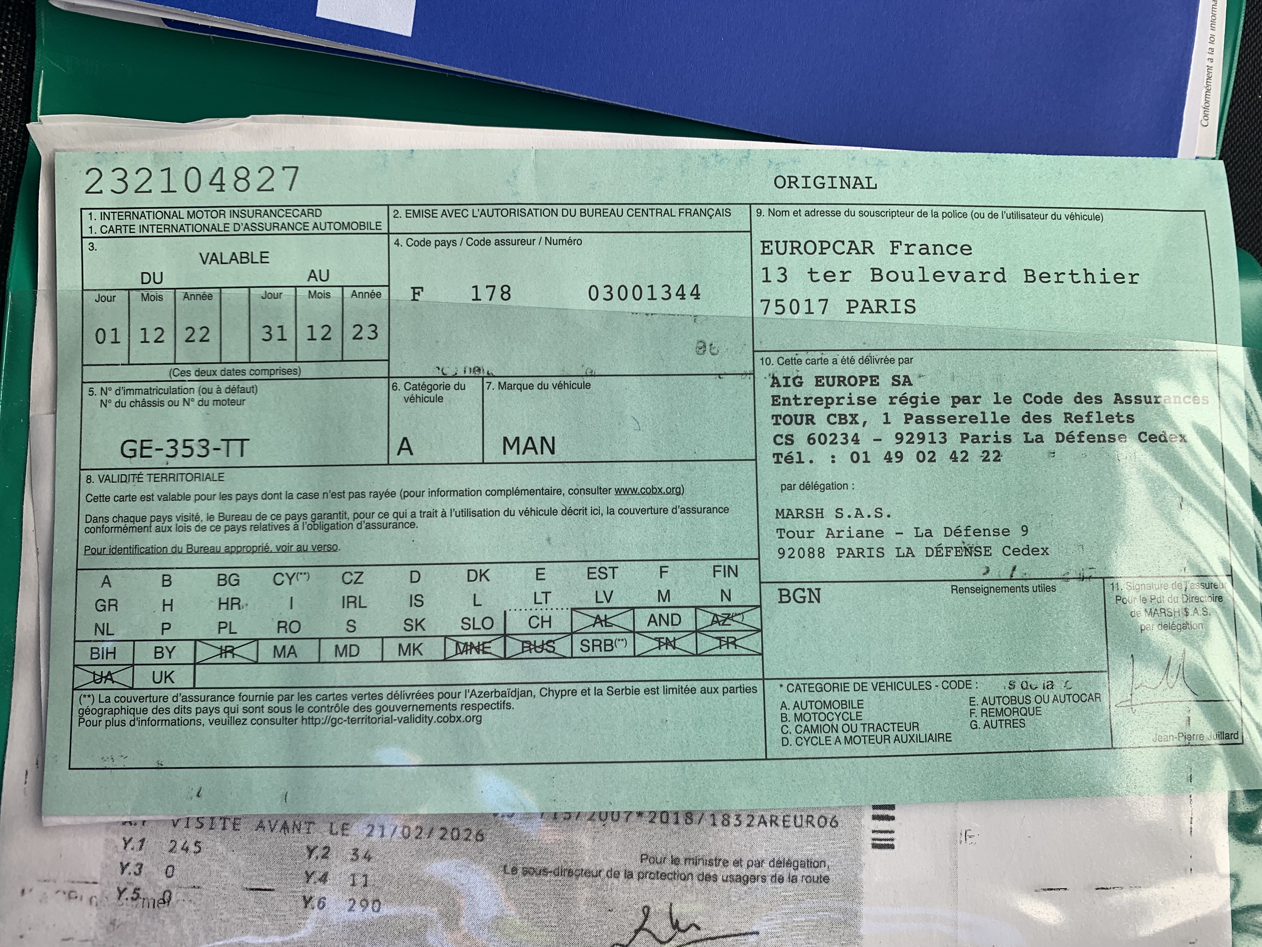 Kilométrage du véhicule au dernier contrôle pollution : 1 000 kms